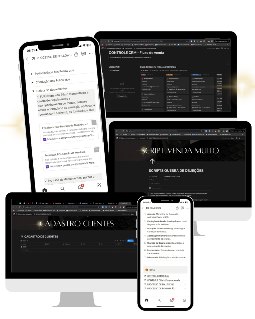 Não. São ferramentas acompanhadas de aulas explicativas rápidas de como utilizar melhor a estrutura, gestão e marketing do seu escritório jurídico